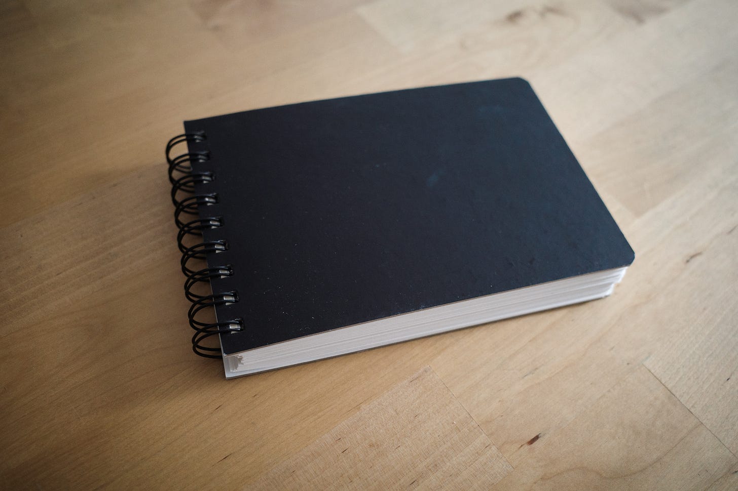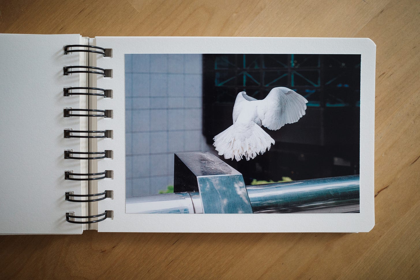 I bought a notebook from a local store that had thick, unlined paper and rounded edges. Next, I printed a month’s worth of photographs on a very cheap printer, and got to glueing.