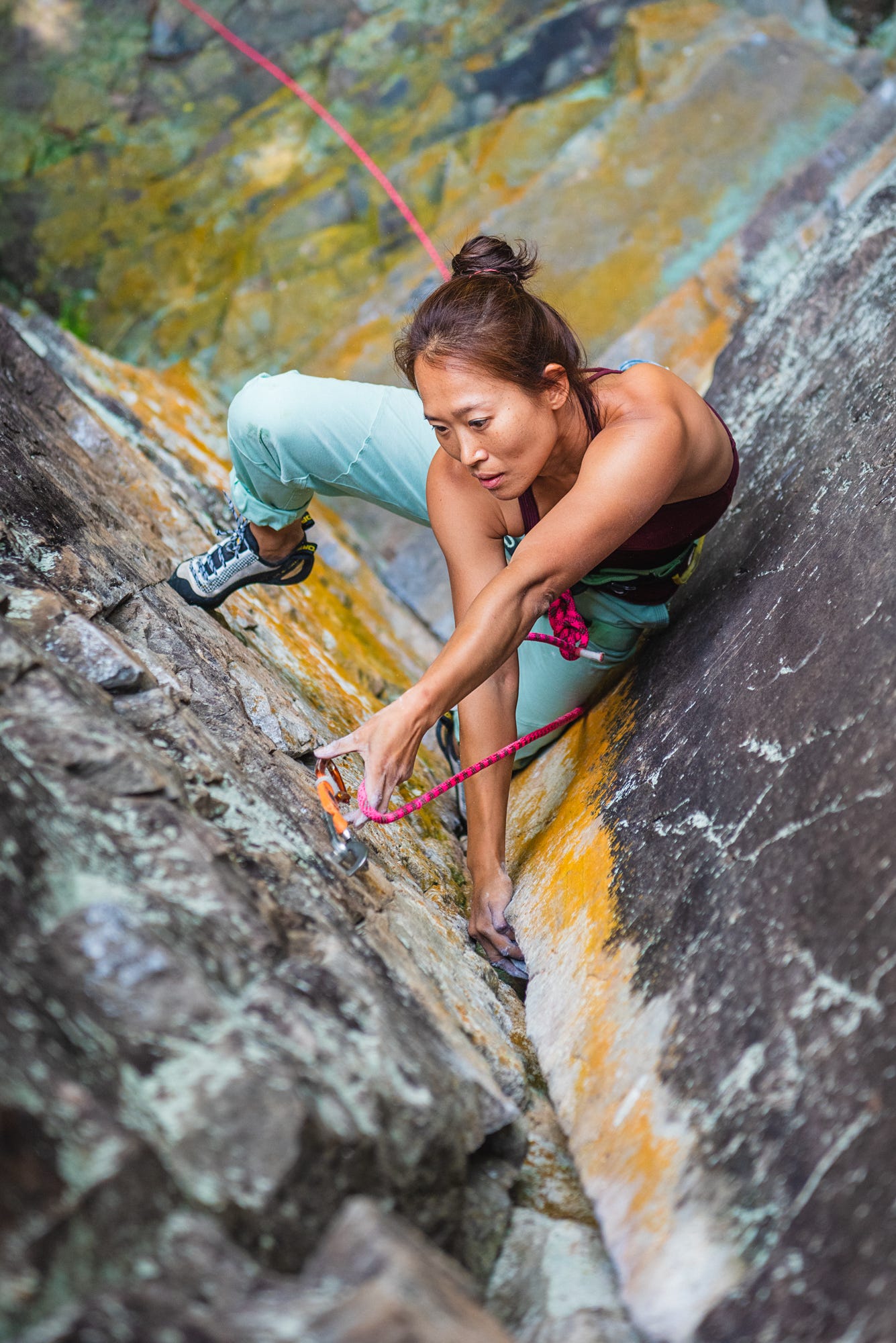 A few years ago I was tasked by Patagonia Korea with photographing their climbers in action. I was hooked on indoor bouldering at the time, and the idea of shooting from the side of a cliff sounded like a ton of fun. I scaled the rock using an awkward amalgam of loops and clips that resembled a cat’s cradle, sketchily slinging the camera on my shoulder like I would on a regular walk.