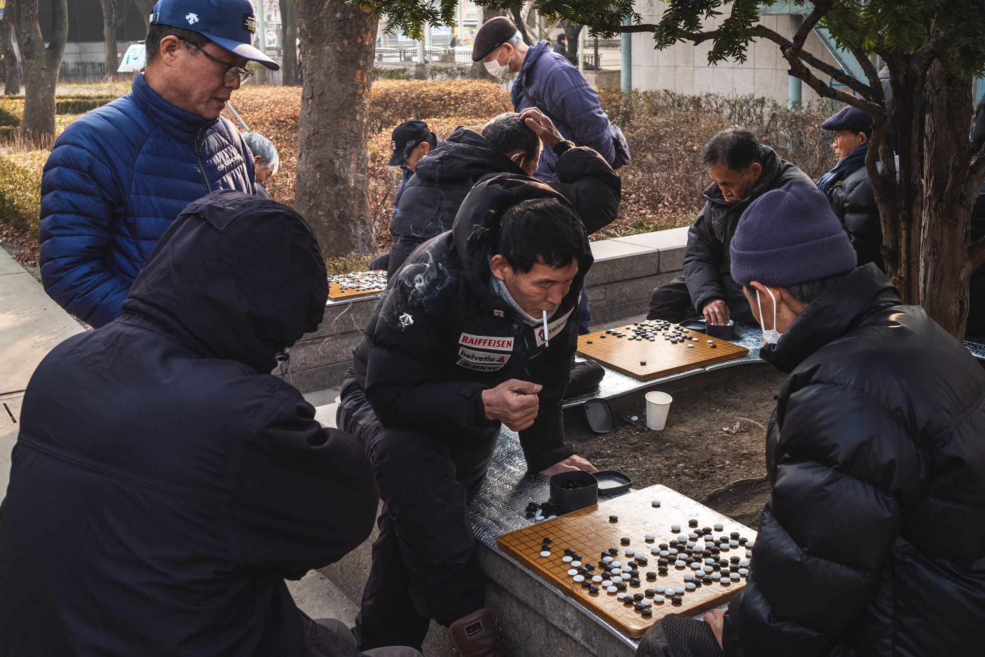 It was this tone of emotional closeness I was aiming for when I spent a month in Seoul’s historic Jongno district approaching the old men who hang out in the park playing baduk and asking them for portraits.